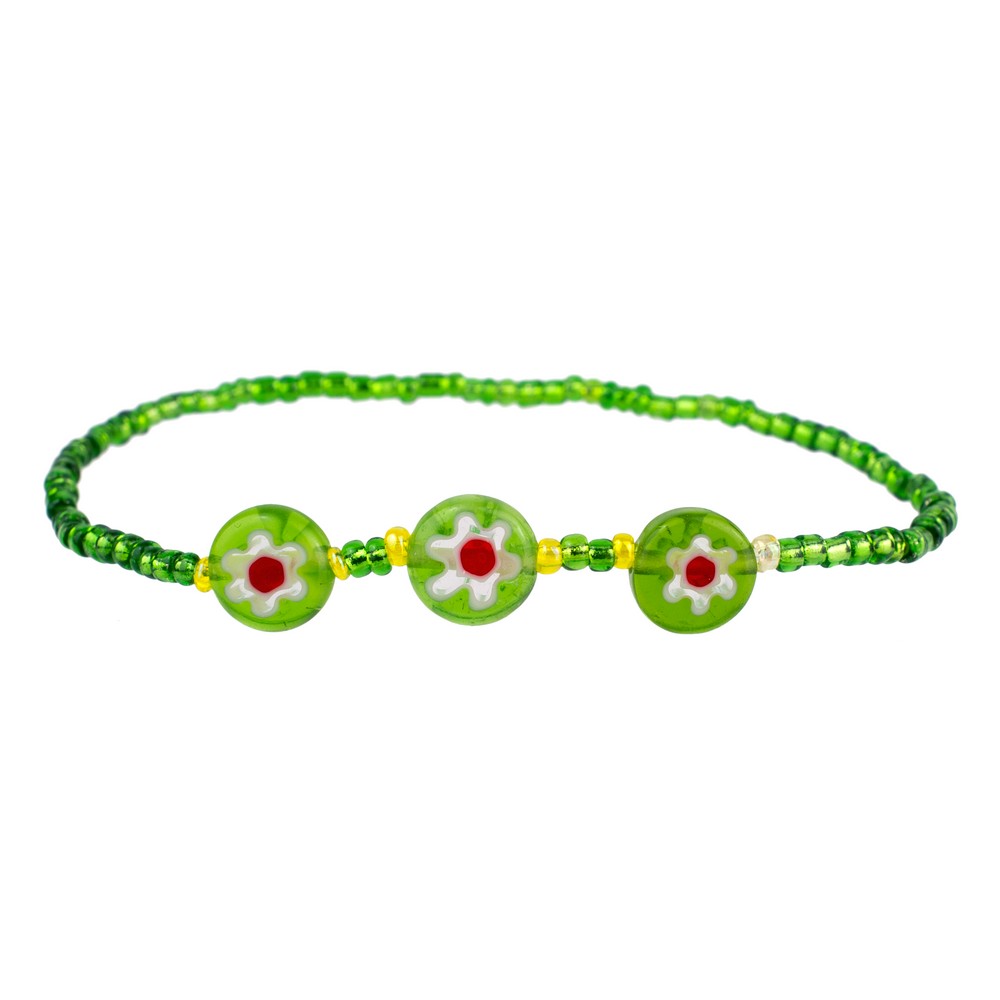 Millefiori glass bracelet with floral motif. Venetian-inspired craftsmanship. Strong appeal for jewellery retailers and gift shops; suitable for bulk orders.