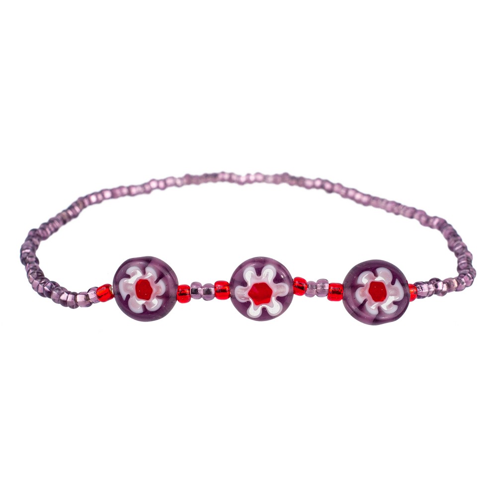 Millefiori glass bracelet with floral motif. Venetian-inspired craftsmanship. Strong appeal for jewellery retailers and gift shops; suitable for bulk orders.