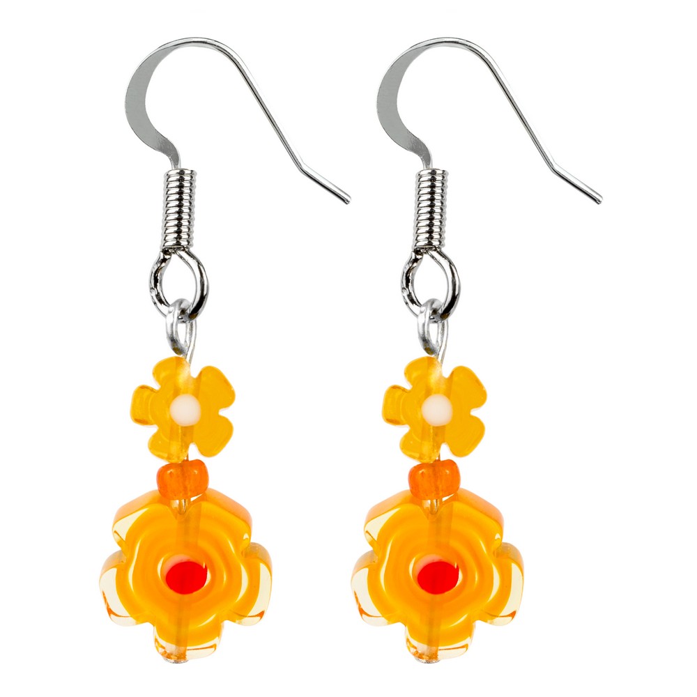 Drop earring millefiori glass flower orange