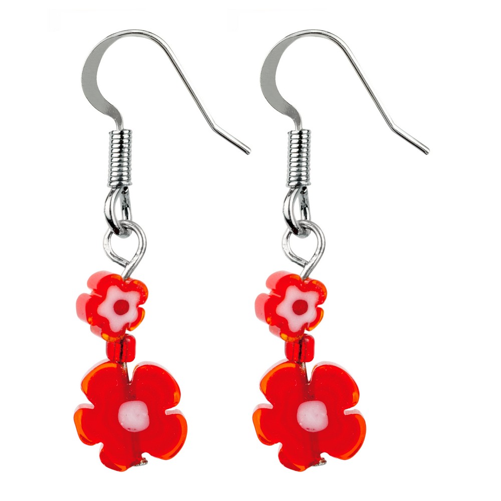 Drop earring millefiori glass flower red