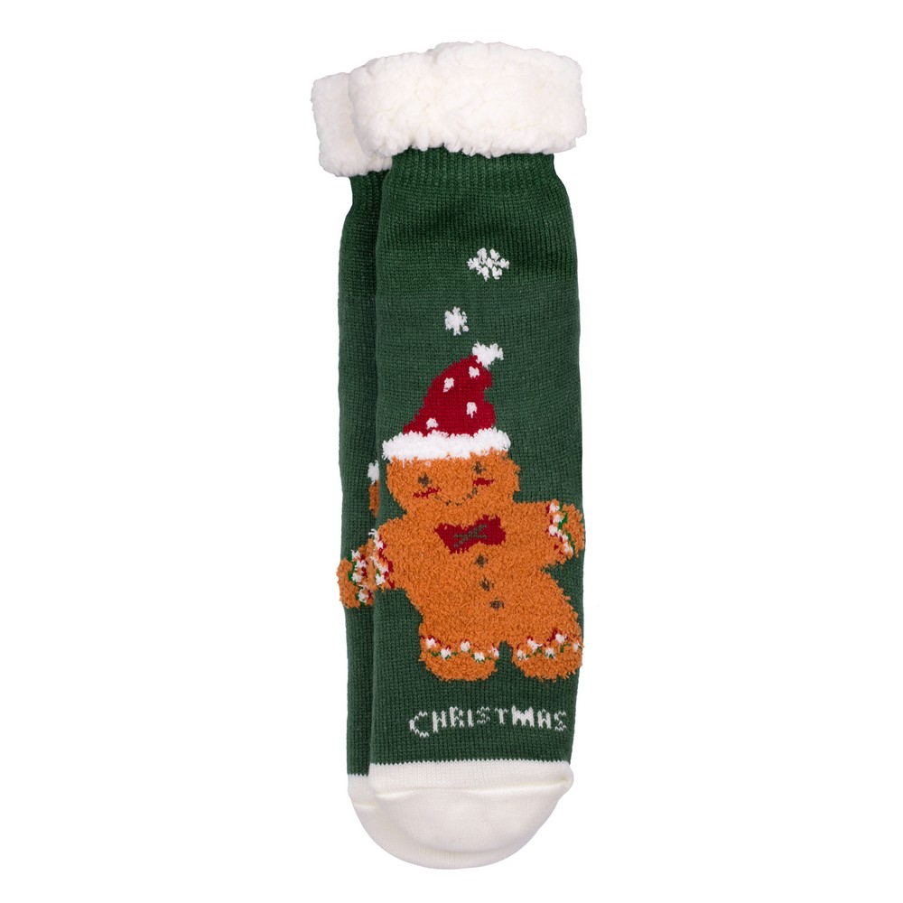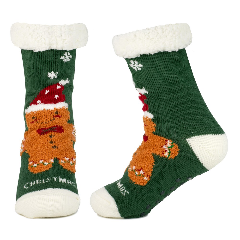 Celebrate the holiday season in style with these festive gingerbread man Christmas socks! Made from soft, cozy fabric, these socks keep your feet warm while spreading Christmas cheer. Featuring a whimsical gingerbread man design, complete with a red Santa hat and bow tie, these socks are perfect for holiday gatherings, lounging by the fireplace, or gifting to a loved one. The green base with white snowflake accents adds a charming seasonal touch, while the fluffy white cuff enhances comfort and warmth. Ideal for anyone looking to add a playful yet stylish festive touch to their winter wardrobe, these Christmas socks are a must-have for the season!