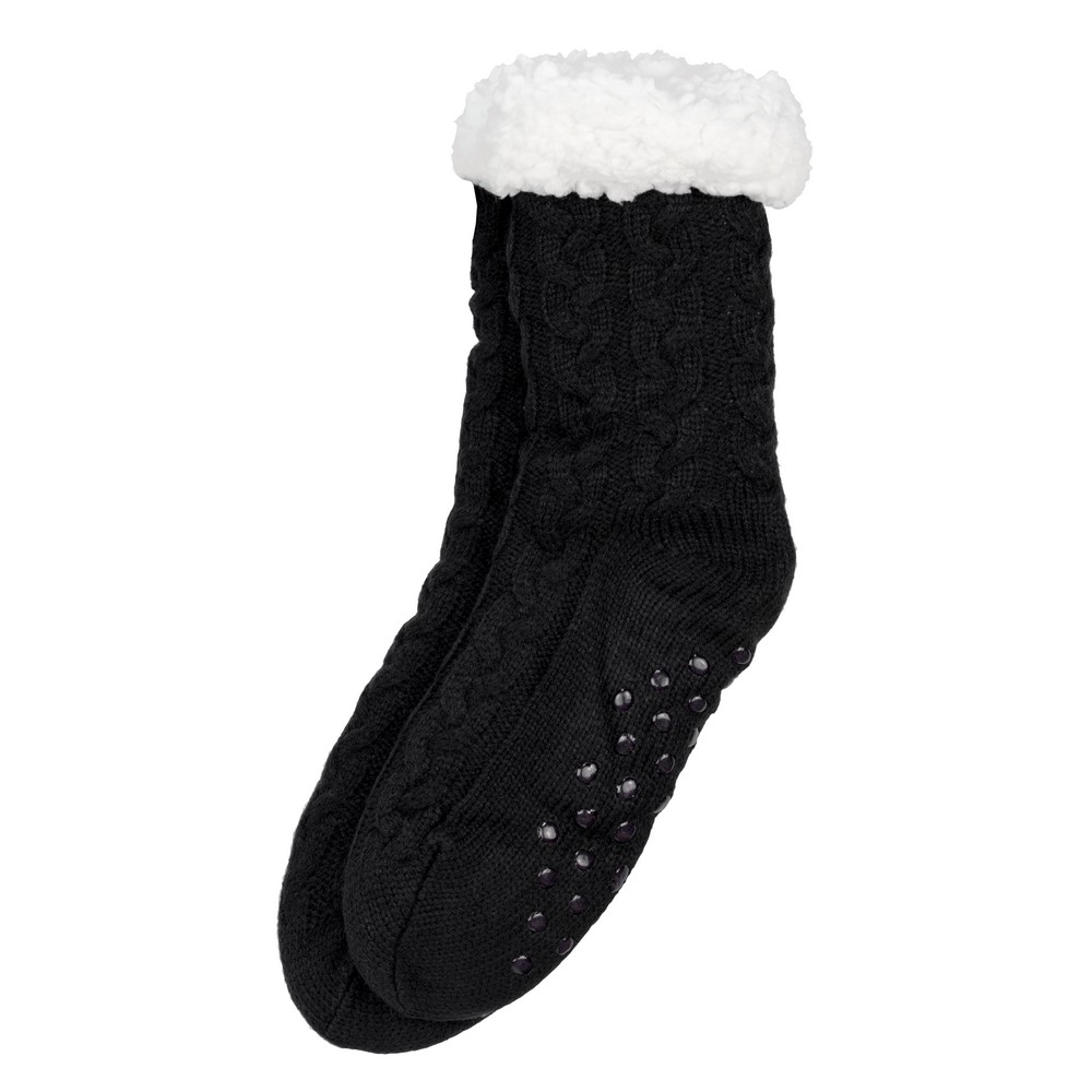 Keep your feet warm and cozy with these navy blue cable knit lounge socks. Designed for ultimate comfort, these socks feature a soft fleece lining at the top, providing a snug and luxurious feel. The anti-slip grips on the soles ensure stability, making them perfect for relaxing at home without worrying about slipping on smooth surfaces. Crafted from high-quality materials, these socks offer warmth and durability, ideal for chilly evenings or winter lounging. A stylish and practical addition to your wardrobe, these socks blend classic knit texture with modern functionality. Treat yourself or gift them to someone who loves cozy essentials!