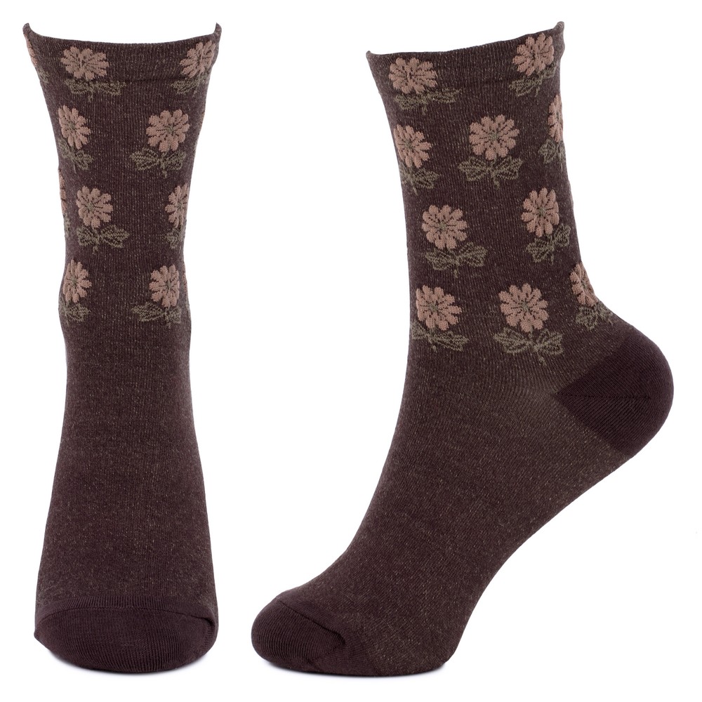 Add a touch of warm, earthy charm to your style with our Brown Dahlia Floral Crew Socks. These socks feature a rich brown base adorned with a simple, repeating pattern of a classic dahlia flower in a lighter shade. The subtle, retro-inspired design is perfect for those who appreciate unique accessories with a vintage flair. Crafted from a soft, high-quality cotton blend, these crew socks provide both comfort and durability. Their breathable, stretchy fabric ensures a perfect fit for all-day wear. The timeless color and unique botanical pattern make these socks a great addition to any outfit, from casual boots to your favorite loafers.