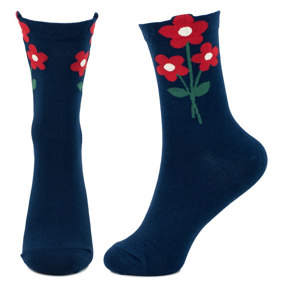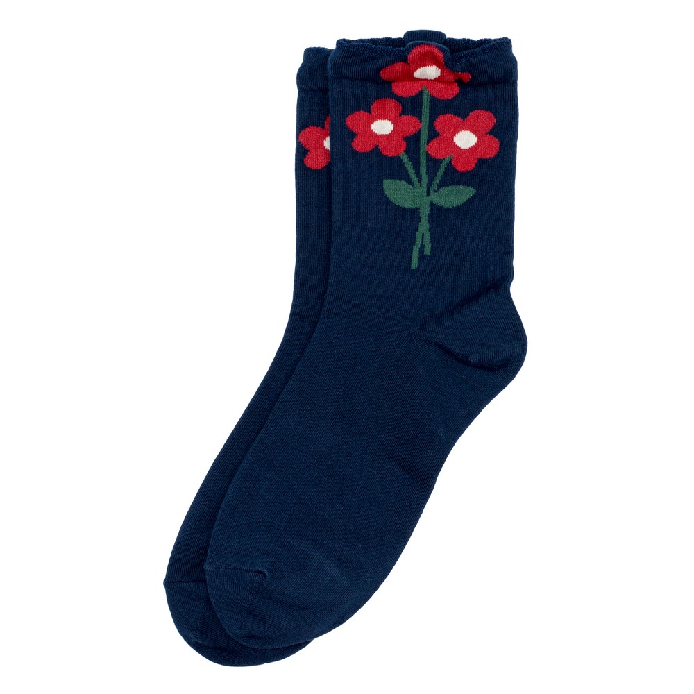 Socks cotton & spandex flora pop navy blue