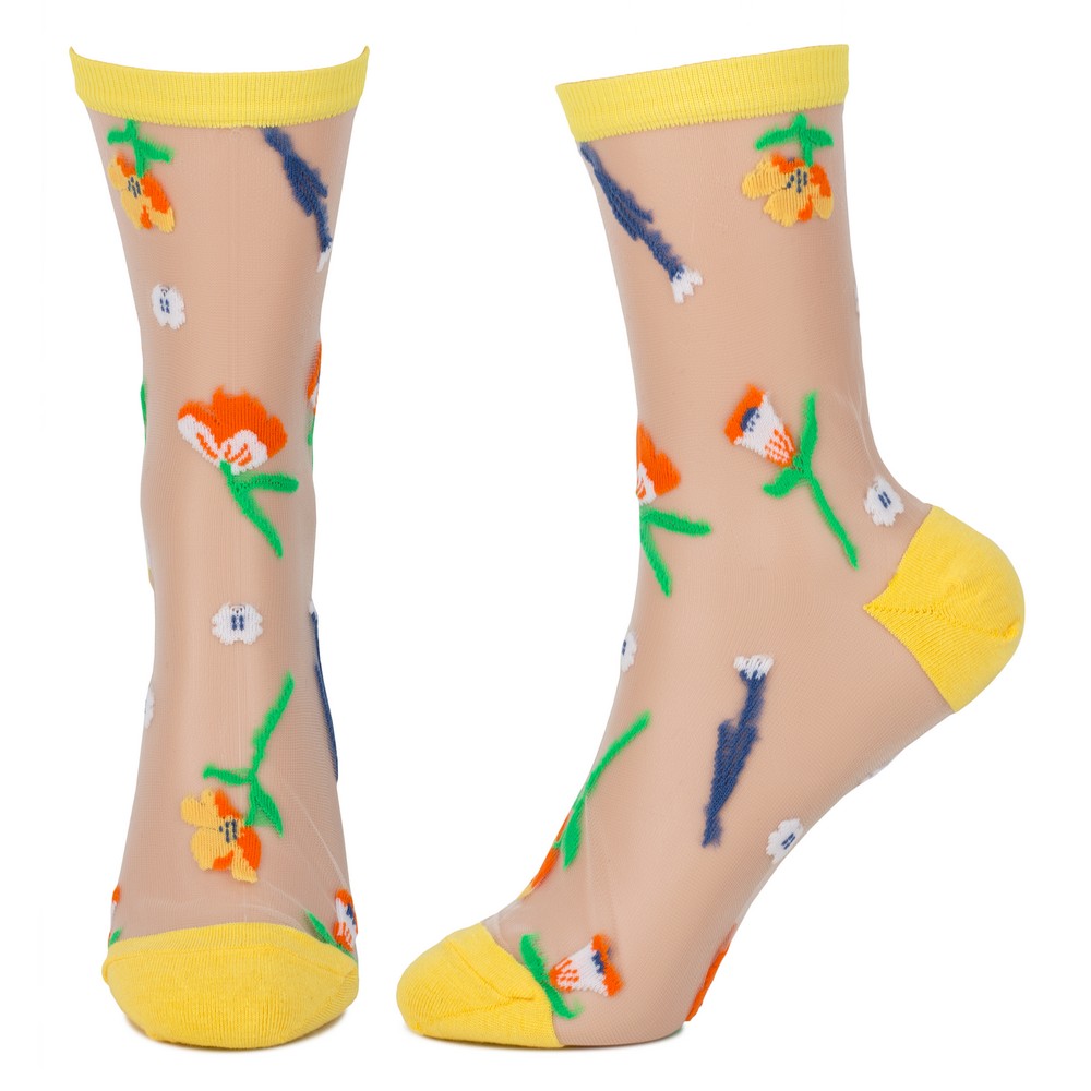 Socks cotton sheer petal parade yellow