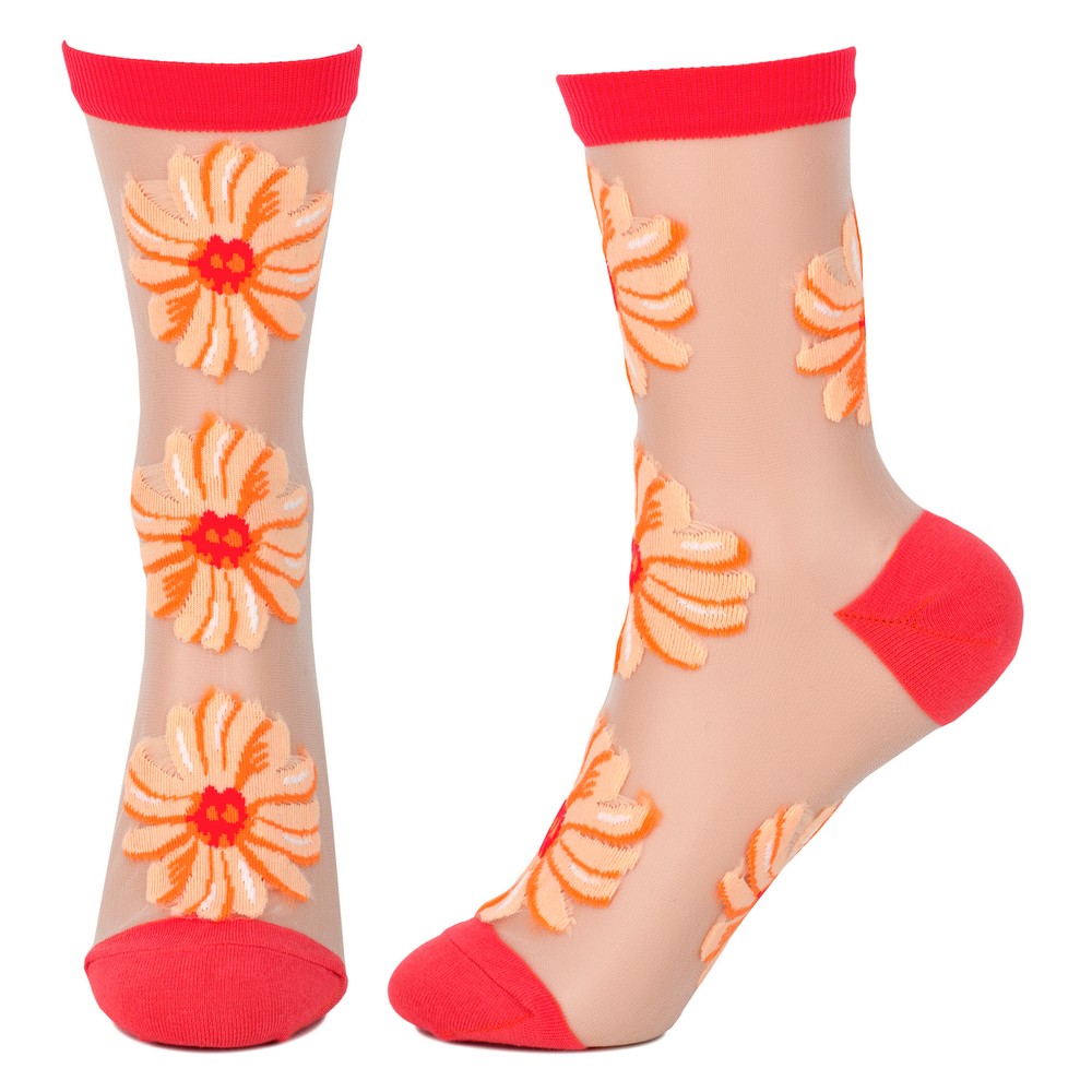 Socks cotton sheer floral fade orange