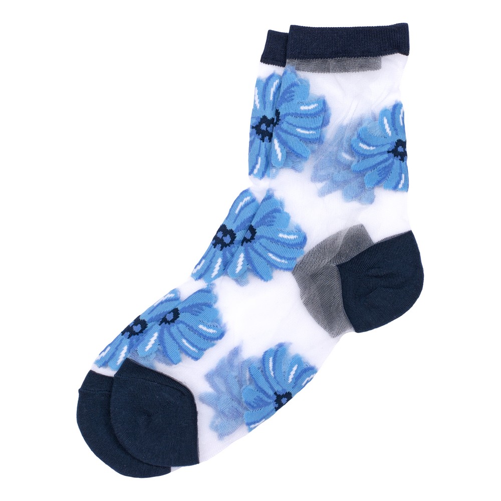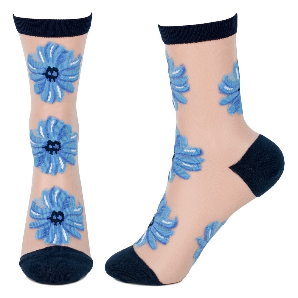 Socks cotton sheer floral fade blue
