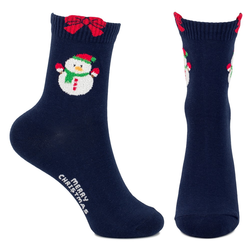 Be the first to review “Socks cotton & spandex snowman bow cuff navy blue”