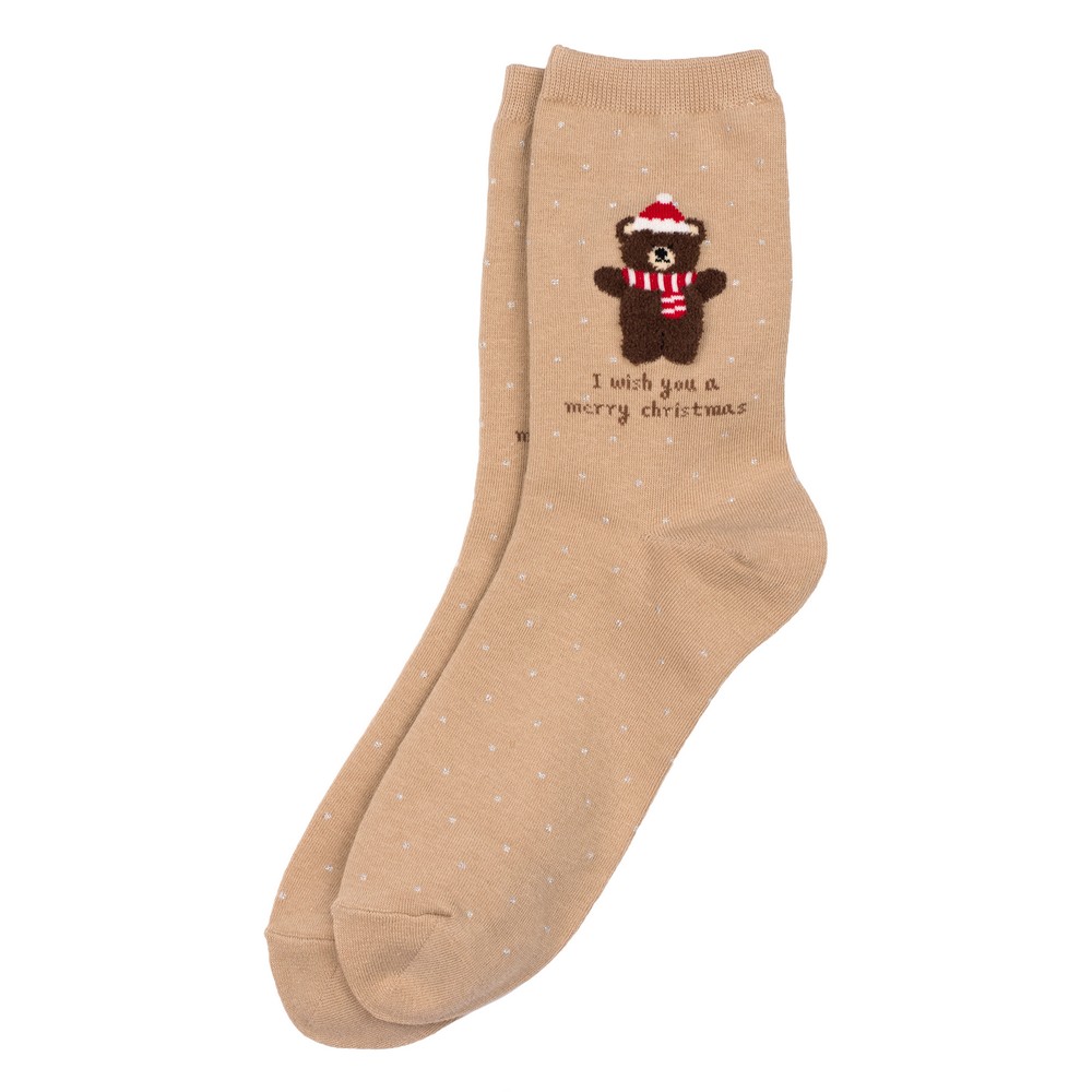 Be the first to review “Socks cotton & spandex polka festive bear icon beige”