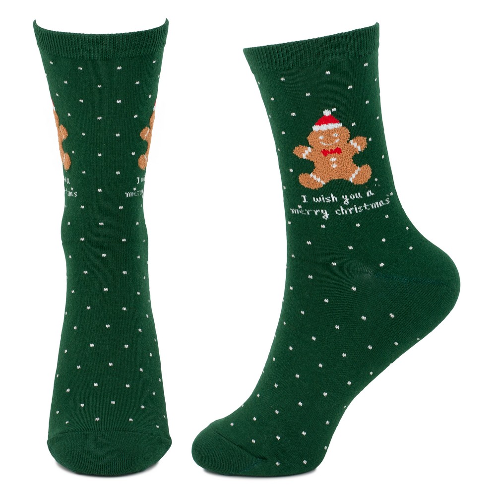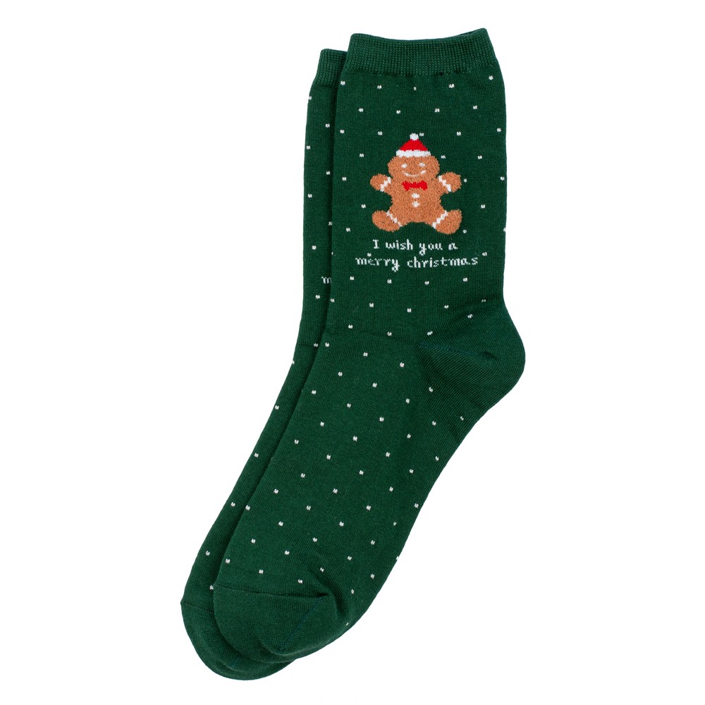 Socks cotton & spandex polka festive gingerbread man icon green