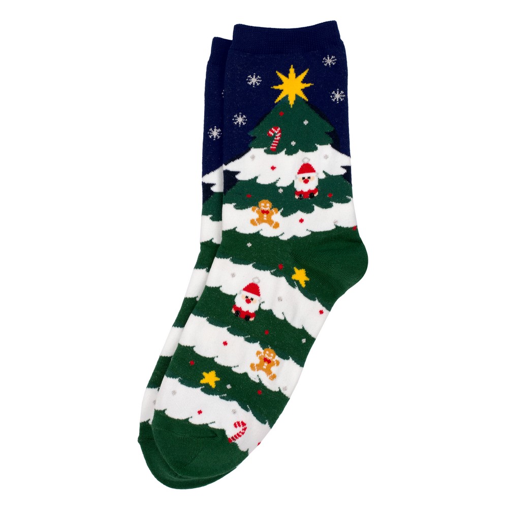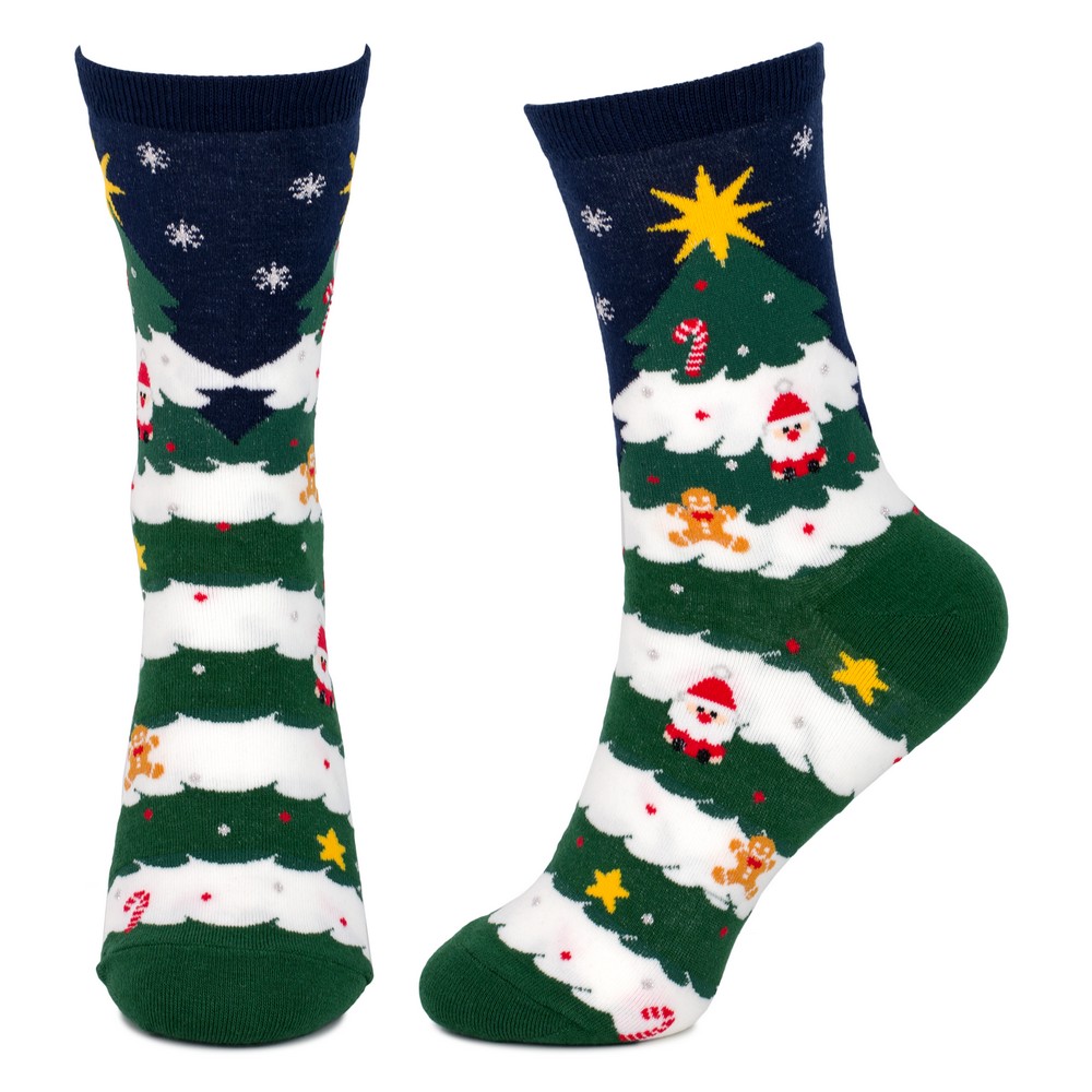 Be the first to review “Socks cotton & spandex christmas tree party navy blue”