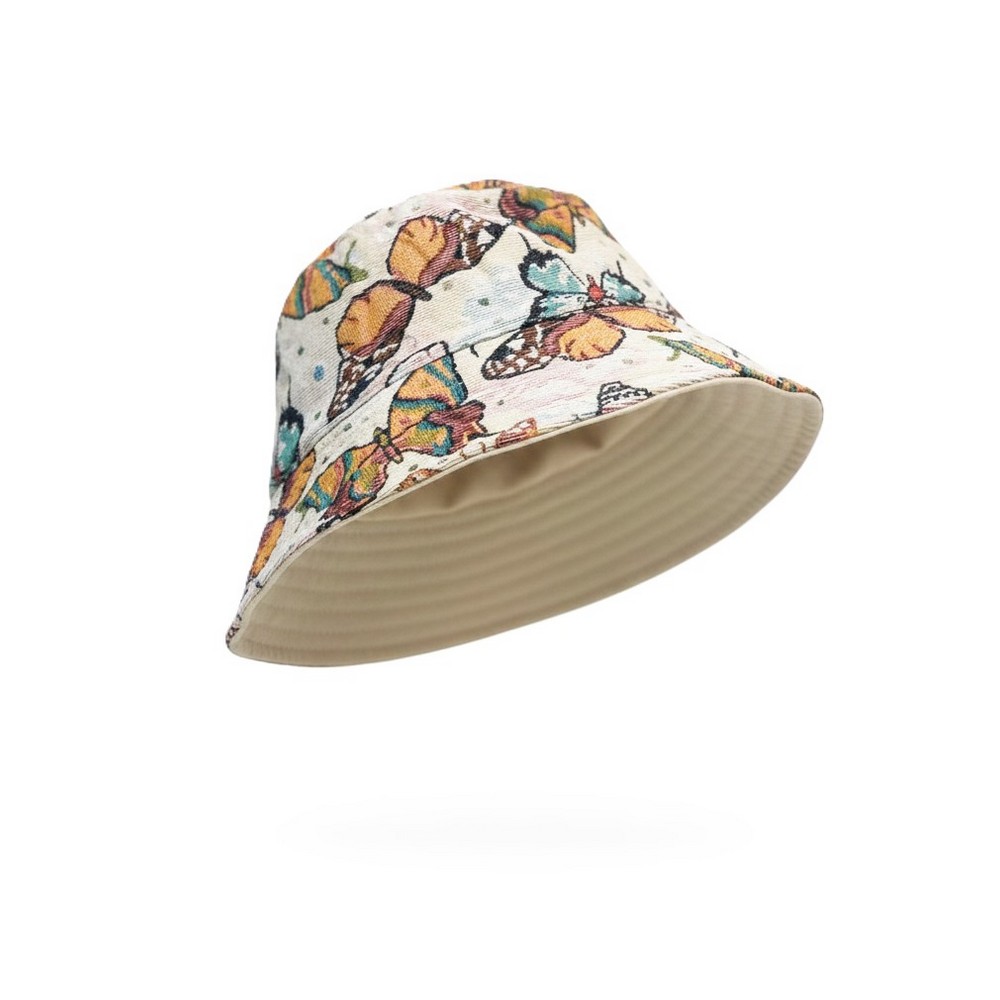 Hat bucket embroidered butterfly off white
