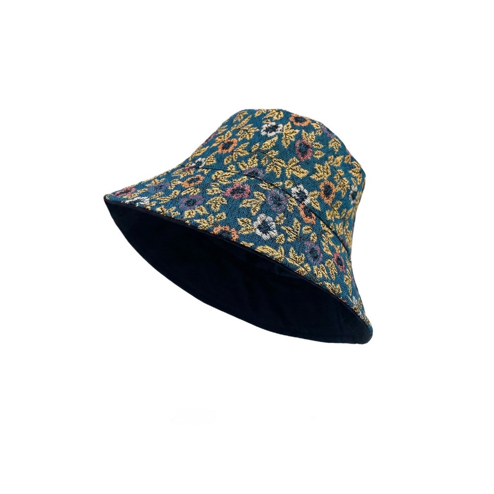 Hat bucket embroidered floral teal blue